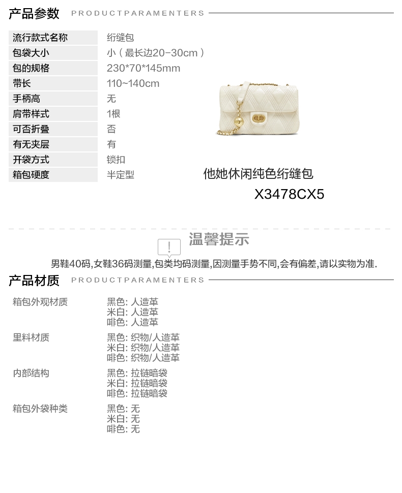 | 风格:休闲 | 适用场景:休闲 | 开袋方式:锁扣 | 性别:女子 | 是否防水:否 |