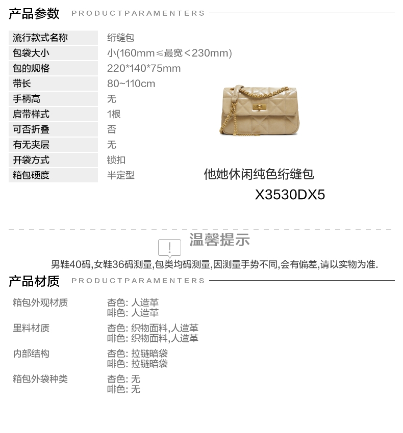 | 风格:休闲 | 色系:杏色 | 适用场景:休闲 | 开袋方式:锁扣 | 性别:女子 |