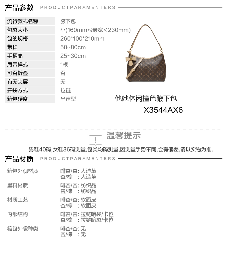 | 适用场景:休闲 | 开袋方式:拉链 | 性别:女子 | 手柄高:25~30cm | 里料材质:纺织品 |