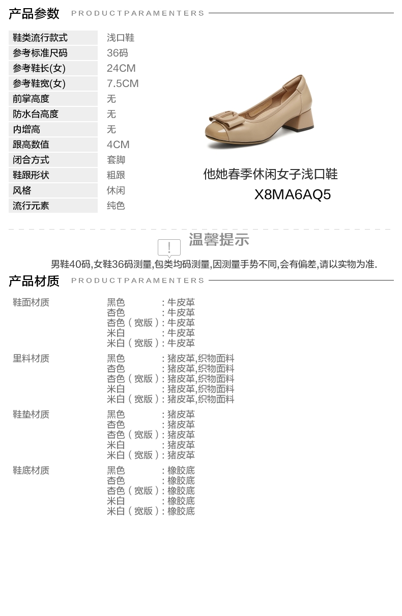 | 款式季节:春季 | 鞋垫材质:猪皮革 | 渠道划分:线下同步 | 前掌高度:无 | 皮质特征:软面皮 |