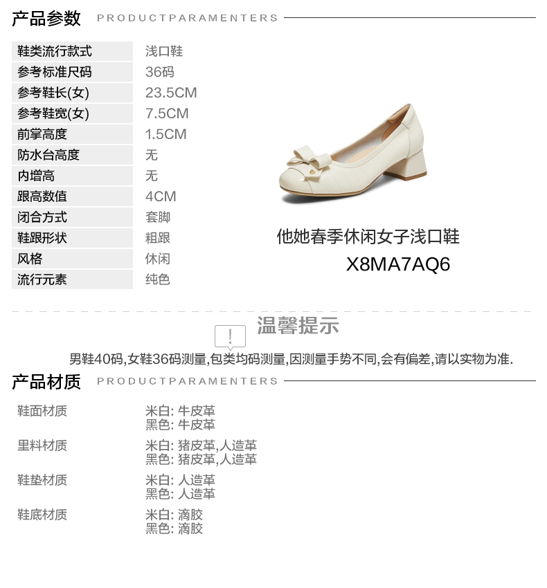 | 上市时间:2026年春季 | 鞋类流行款式:浅口鞋 | 鞋头款式:圆头 | 鞋面图案:纯色 | 鞋跟形状:粗跟 |