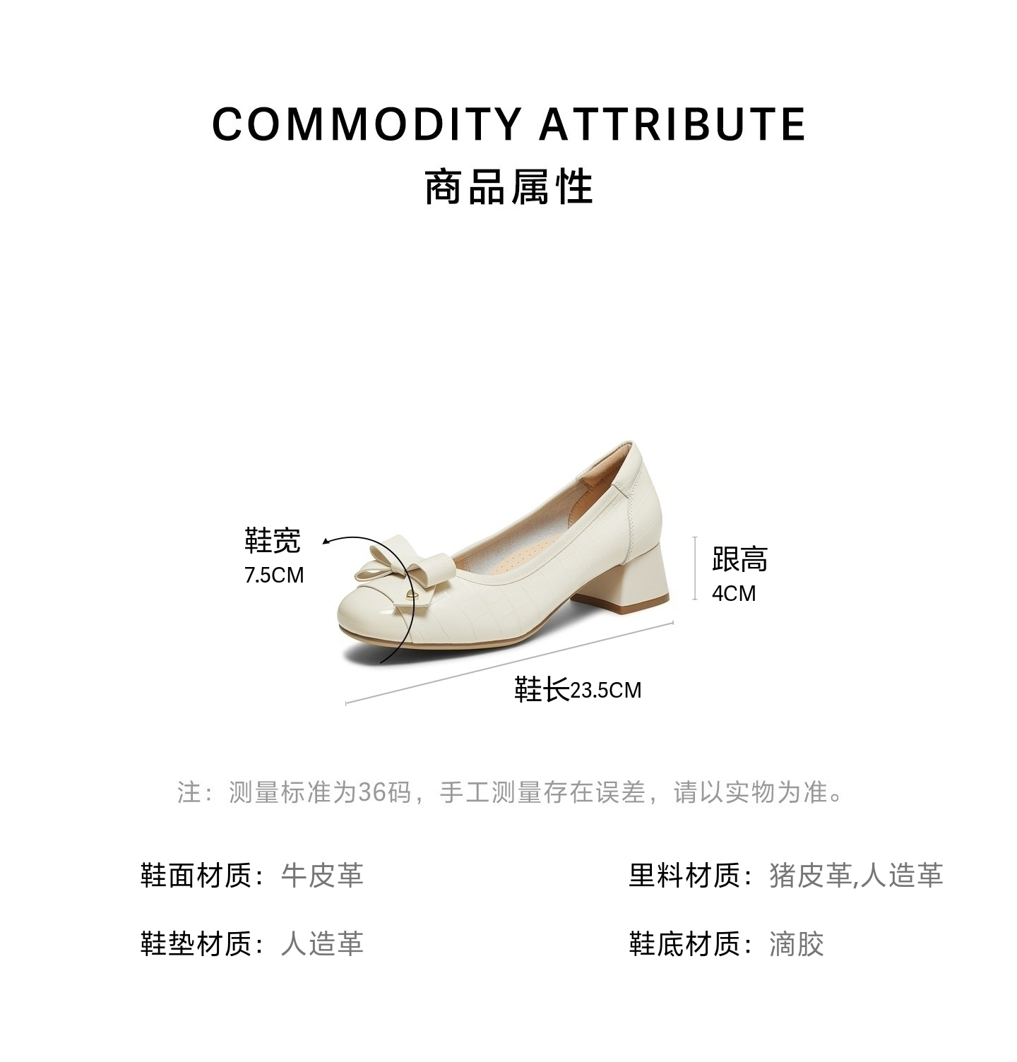 | 跟高数值:4CM | 适用人群:女子 | 性别:女子 | 里料材质:人造革猪皮革 | 制鞋工艺:胶贴皮鞋 |