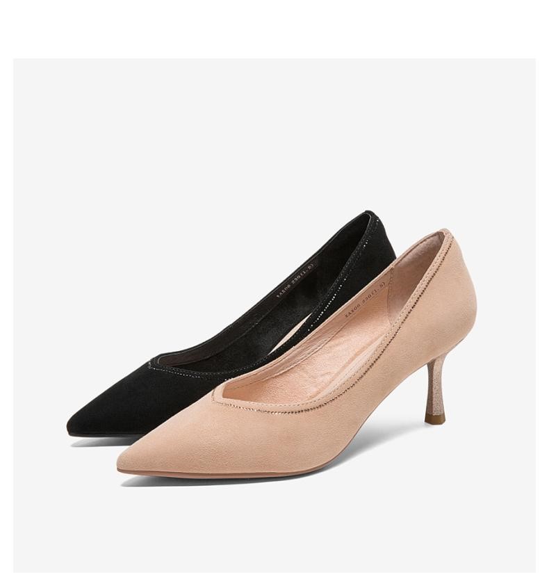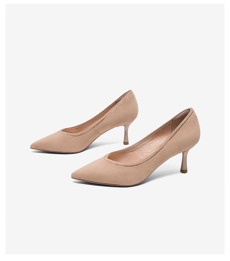 | 鞋头款式:尖头 | 鞋底材质:橡胶底 | 鞋面图案:纯色 | 内增高:无 | 鞋跟形状:细跟 |