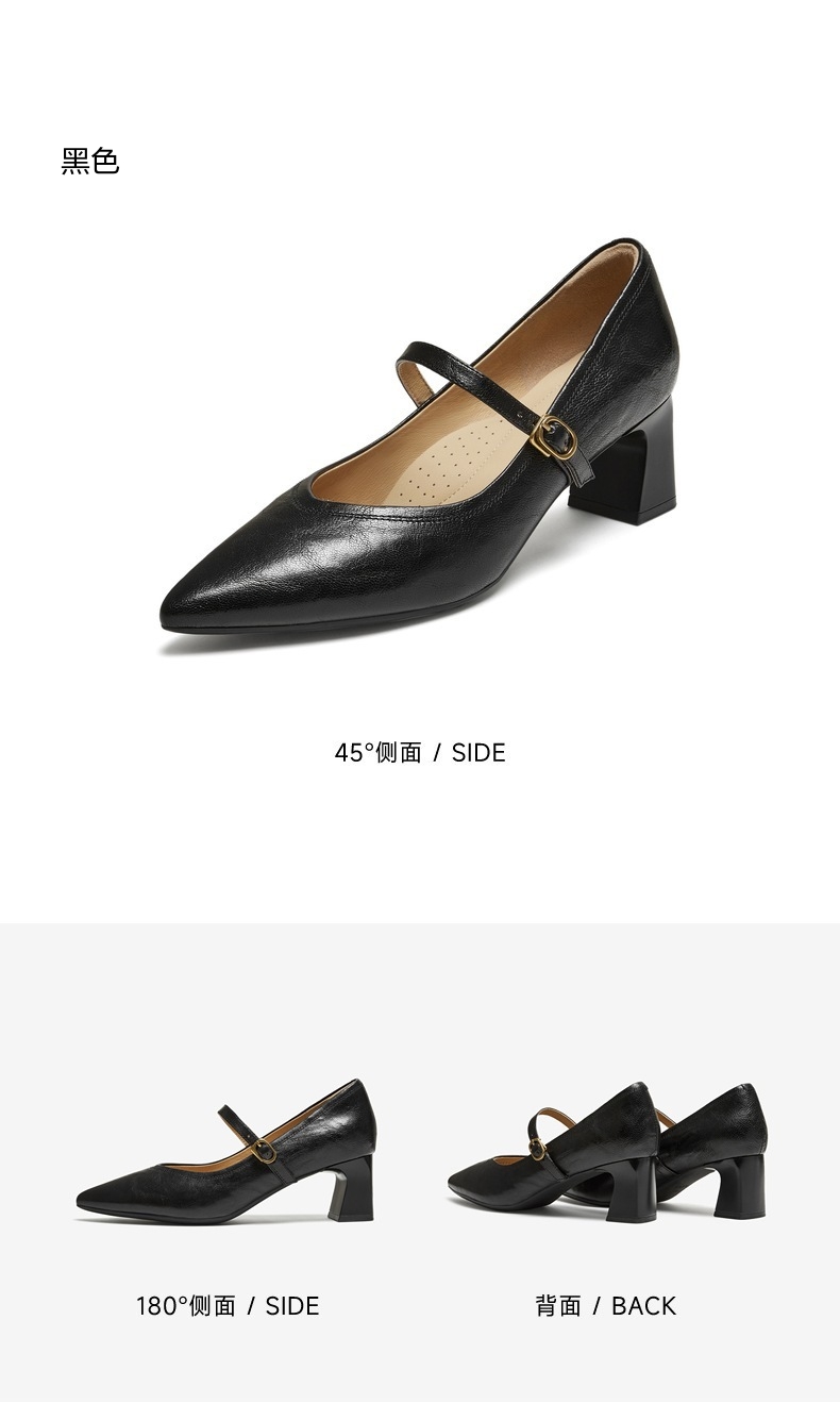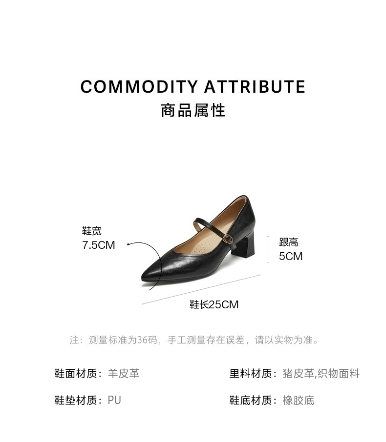 鞋头款式:尖头 鞋底材质:橡胶底 鞋面图案:纯色 内增高:无 鞋跟形状:粗跟