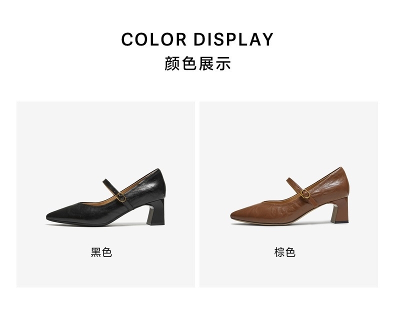 | 鞋头款式:尖头 | 鞋底材质:橡胶底 | 鞋面图案:纯色 | 内增高:无 | 鞋跟形状:粗跟 |