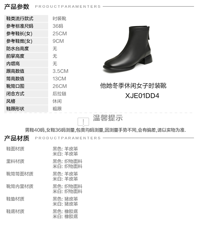 | 鞋底材质:橡胶底 | 靴筒内里材质:织物面料 | 内增高:无 | 鞋面材质:羊皮革 | 适用场合:日常休闲 |