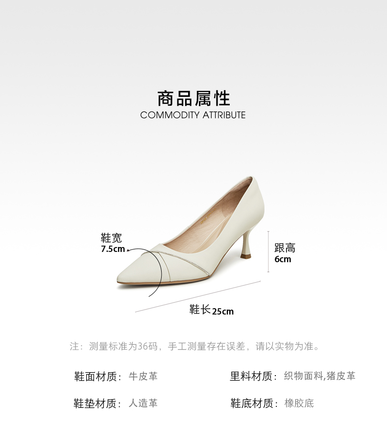 | 生产/经销/进口厂家:丽荣鞋业(深圳)有限公司 | 鞋类流行款式:浅口鞋 | 鞋头款式:尖头 | 执行标准:皮鞋QB/T1002-2015 | 跟高范围:高跟鞋(6-8CM) |