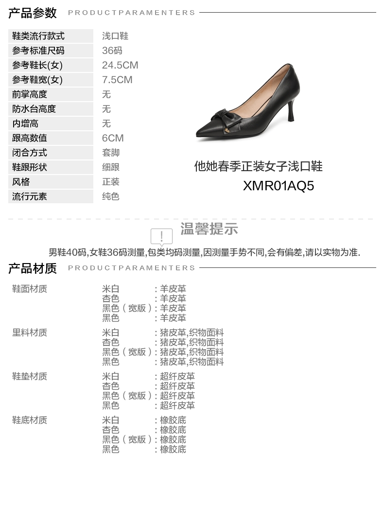 | 参考鞋宽(女):8CM | 风格:正装 | 年份:2025年 | 色系:黑色 | 参考标准尺码:36码 |