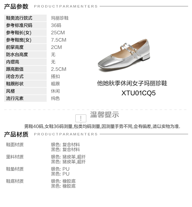 • TATA/他她2025秋商场同款时尚气质女玛丽珍鞋新款XTU01CQ5