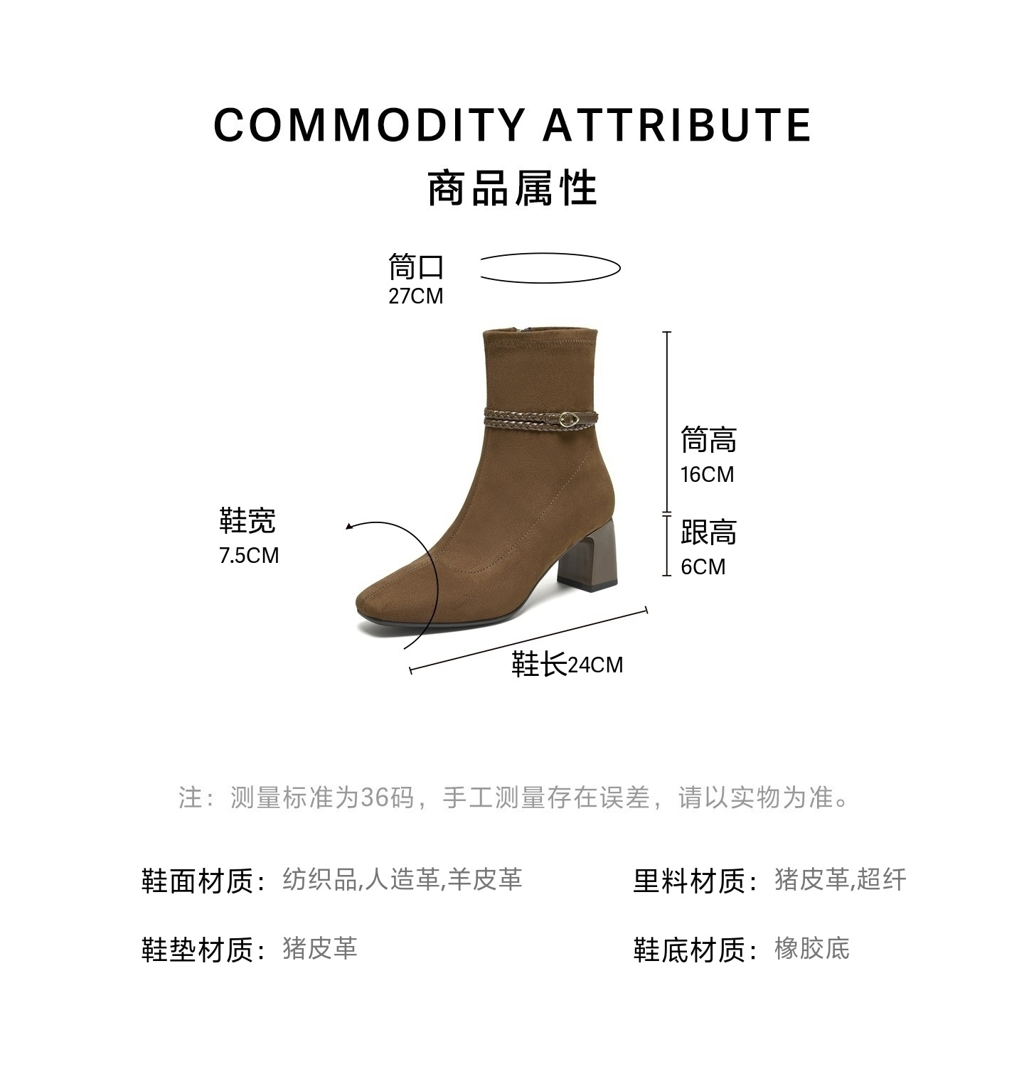 | 配跟:有 | 靴筒口围:27CM | 上市时间:2025年冬季 | 鞋类流行款式:时装靴 | 鞋头款式:方头 |