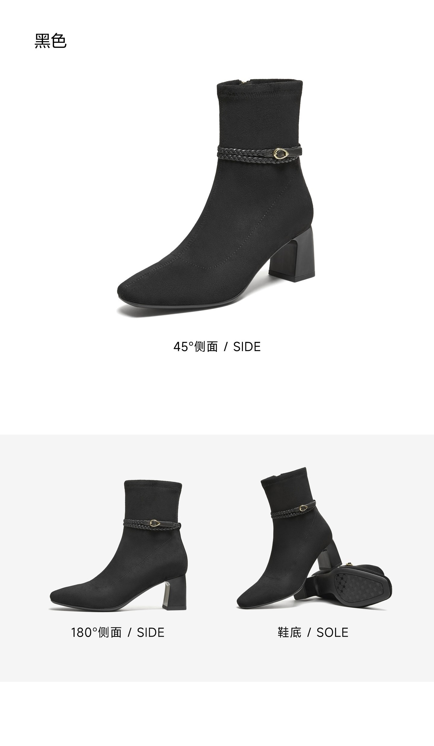 | 鞋底材质:橡胶底 | 靴筒内里材质:超纤猪皮革 | 内增高:无 | 鞋面材质:纺织品羊皮革人造革 | 闭合方式:侧拉链 |