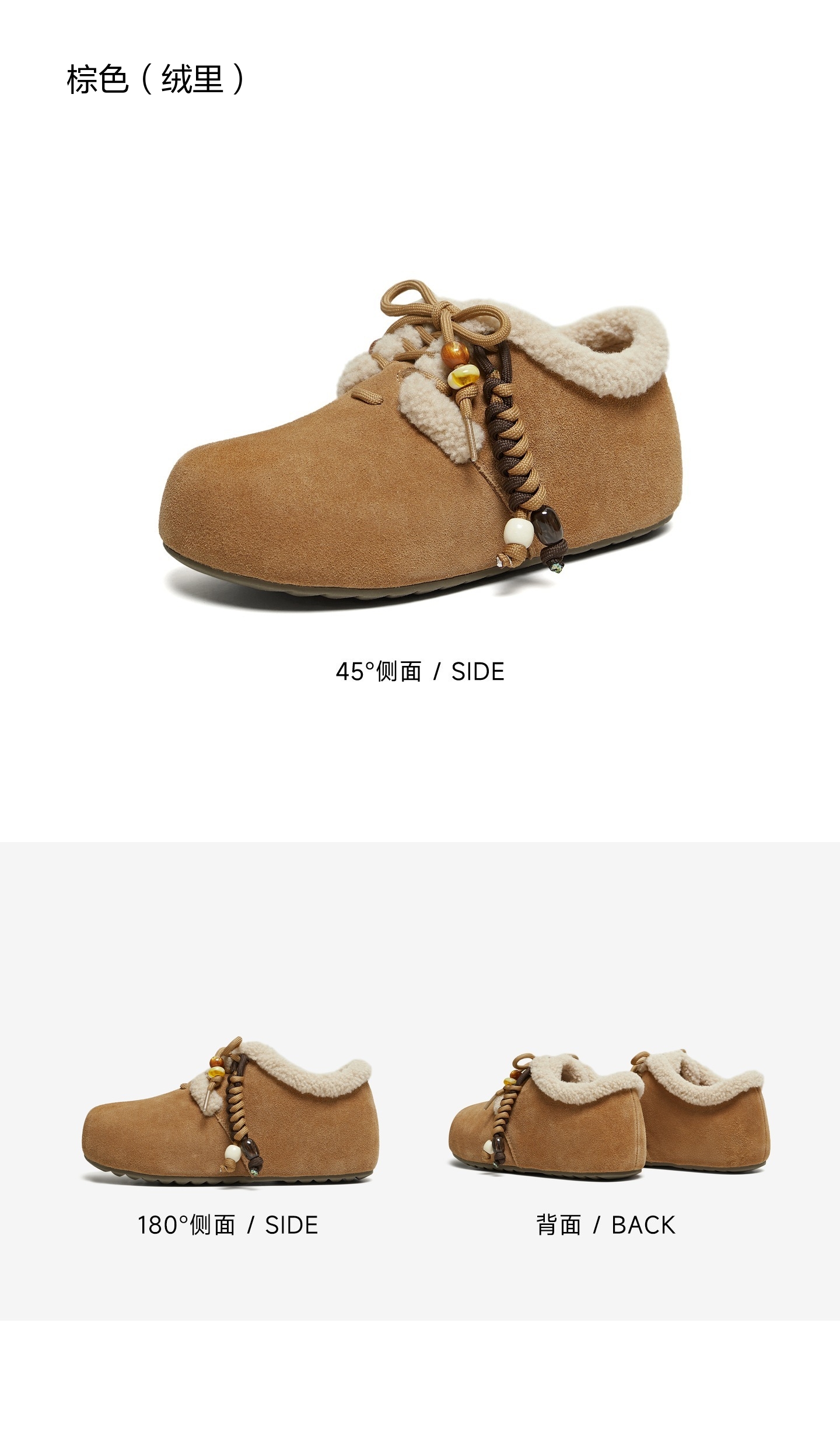 | 色系:棕色 | 跟高数值:4CM | 适用人群:女子 | 性别:女子 | 里料材质:人造短毛绒 |