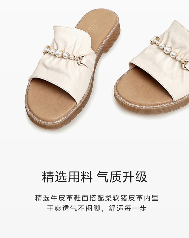 | 皮质特征:牛皮革 | 前掌高度:1CM | 防水台高度:无 | 鞋类流行款式:拖鞋 |