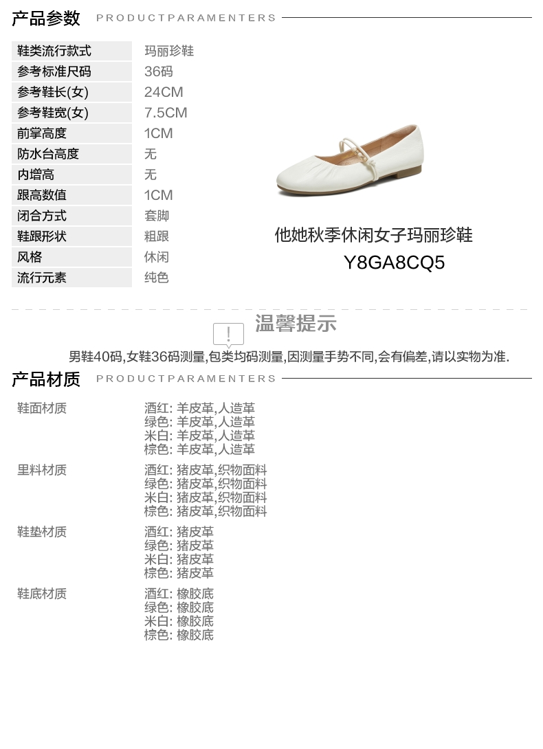 | 皮质特征:软面皮 | 前掌高度:1CM | 防水台高度:无 | 鞋类流行款式:玛丽珍鞋 |