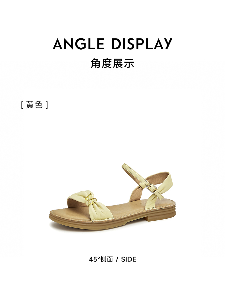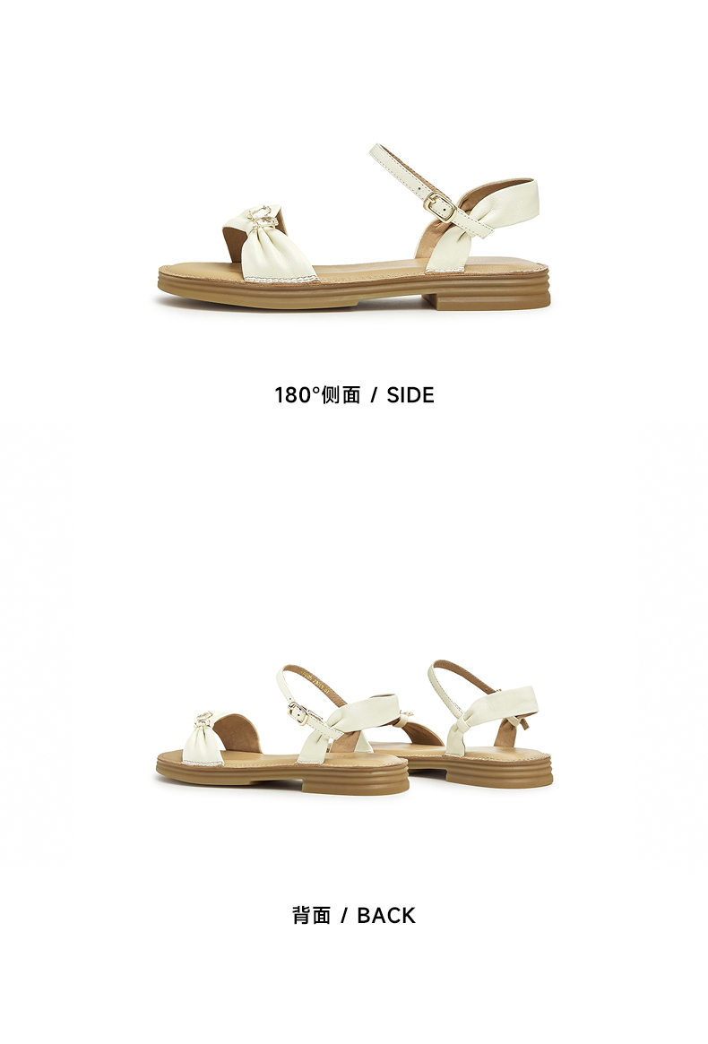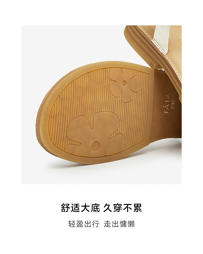 | 鞋头款式:露趾 | 鞋底材质:橡胶底 | 鞋面图案:纯色 | 鞋跟形状:平跟 | 鞋面材质:羊皮革 |