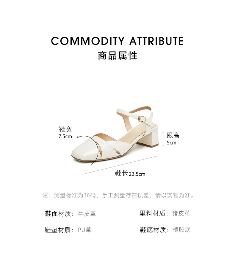 | 鞋头款式:方头 | 执行标准:皮凉鞋GB/T22756-2017 | 跟高范围:中跟鞋(3-5CM) | 鞋面图案:纯色 | 鞋跟形状:粗跟 |