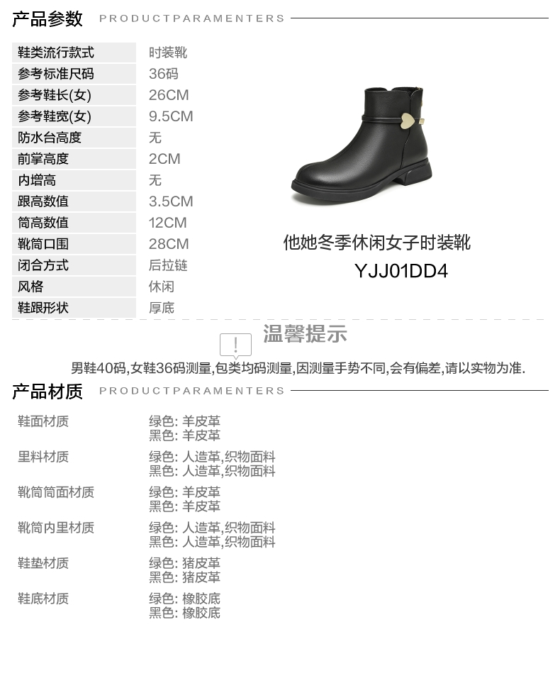 | 款式季节:冬季 | 前掌高度:2CM | 皮质特征:软面皮 | 防水台高度:无 |