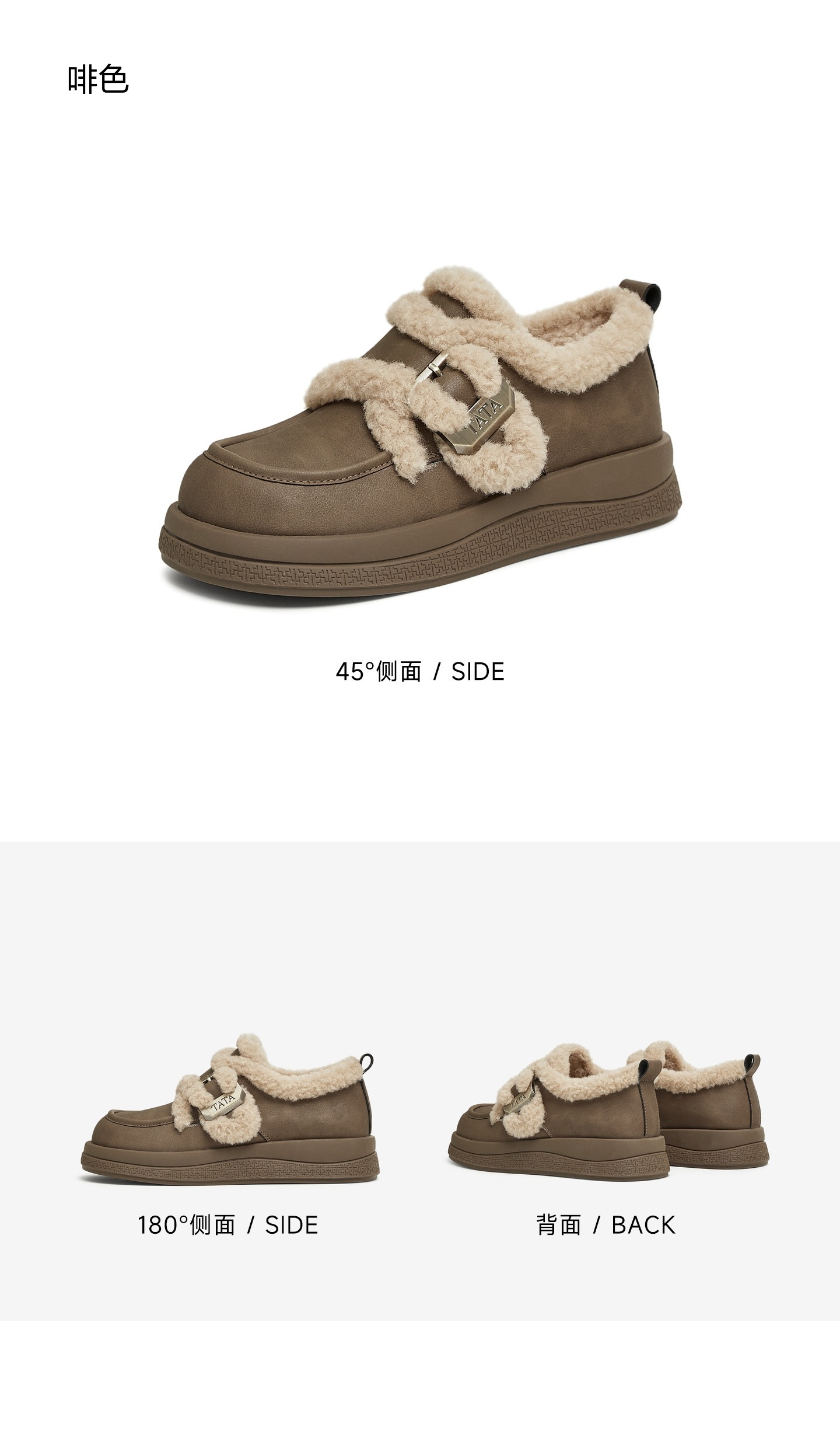 | 色系:咖啡色 | 跟高数值:3.5CM | 适用人群:女子 | 性别:女子 | 里料材质:人造长毛绒 |