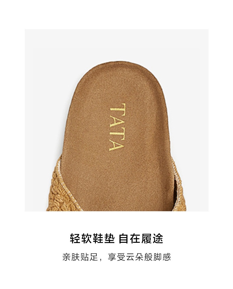 他她(Tata),品牌成立于2003年,致力为都市年轻人群提供时尚潮流、具有性价比的鞋履产品。十五年来“踏踏”的着地声,寓意都市白领元气满满的生活,如时尚“伴履”的TATA一直陪伴左右、伴随走出TATA的时尚步伐。2017年TATA美丽蜕变,TATA STAR元素的加入预示品牌将成为闪亮、前端的时尚鞋履品牌。