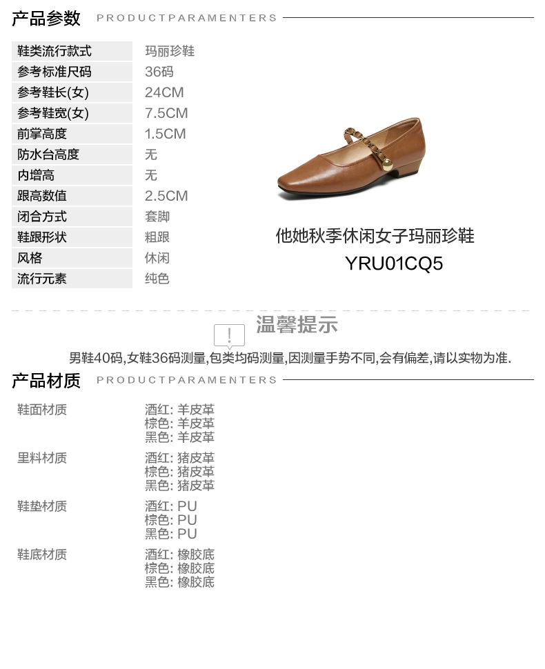 | 皮质特征:软面皮 | 前掌高度:1.5CM | 防水台高度:无 | 鞋类流行款式:玛丽珍鞋 |