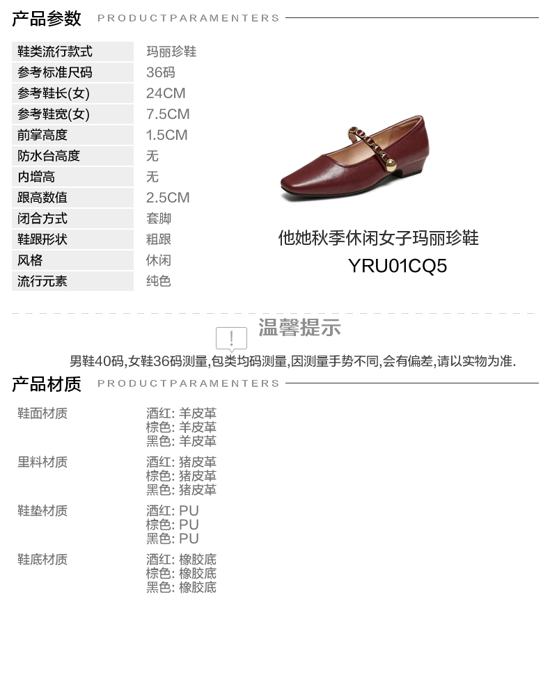 | 皮质特征:软面皮 | 前掌高度:1.5CM | 防水台高度:无 | 鞋类流行款式:玛丽珍鞋 |