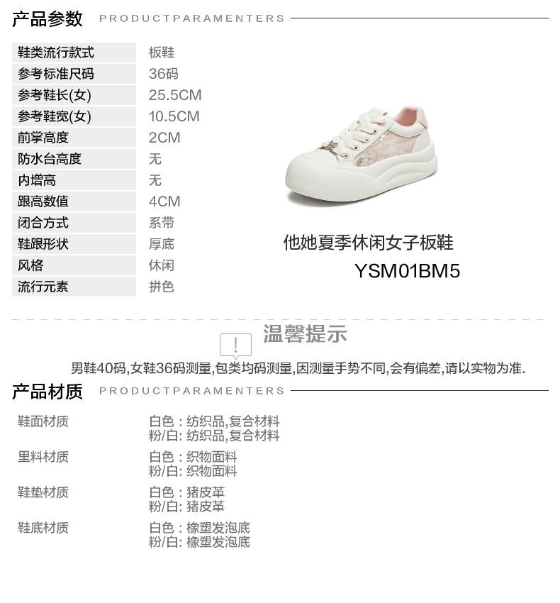 | 鞋跟形状:厚底 | 参考鞋长(女):25.5CM | 流行元素:拼色 | 参考鞋宽(女):10.5CM | 风格:休闲 |