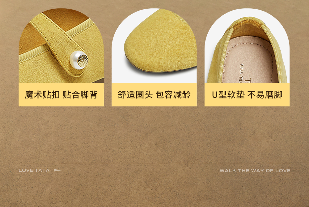 他她(Tata),品牌成立于2003年,致力为都市年轻人群提供时尚潮流、具有性价比的鞋履产品。十五年来“踏踏”的着地声,寓意都市白领元气满满的生活,如时尚“伴履”的TATA一直陪伴左右、伴随走出TATA的时尚步伐。2017年TATA美丽蜕变,TATA STAR元素的加入预示品牌将成为闪亮、前端的时尚鞋履品牌。