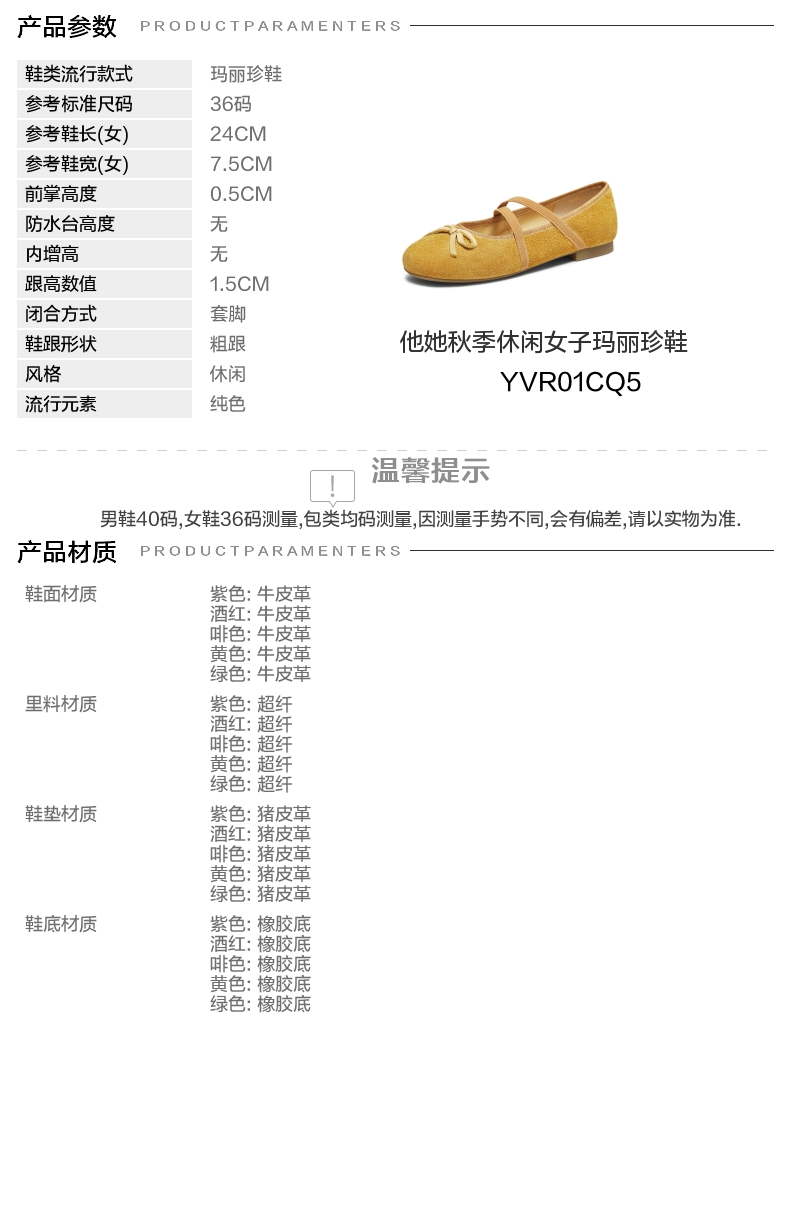 | 皮质特征:软面皮 | 前掌高度:0.5CM | 防水台高度:无 | 鞋类流行款式:玛丽珍鞋 |