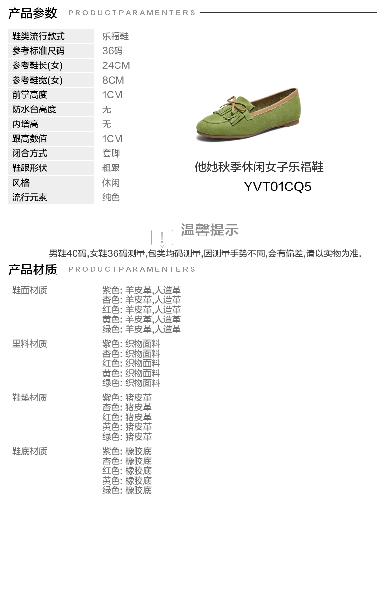 | 皮质特征:软面皮 | 前掌高度:1CM | 防水台高度:无 | 鞋类流行款式:乐福鞋 |