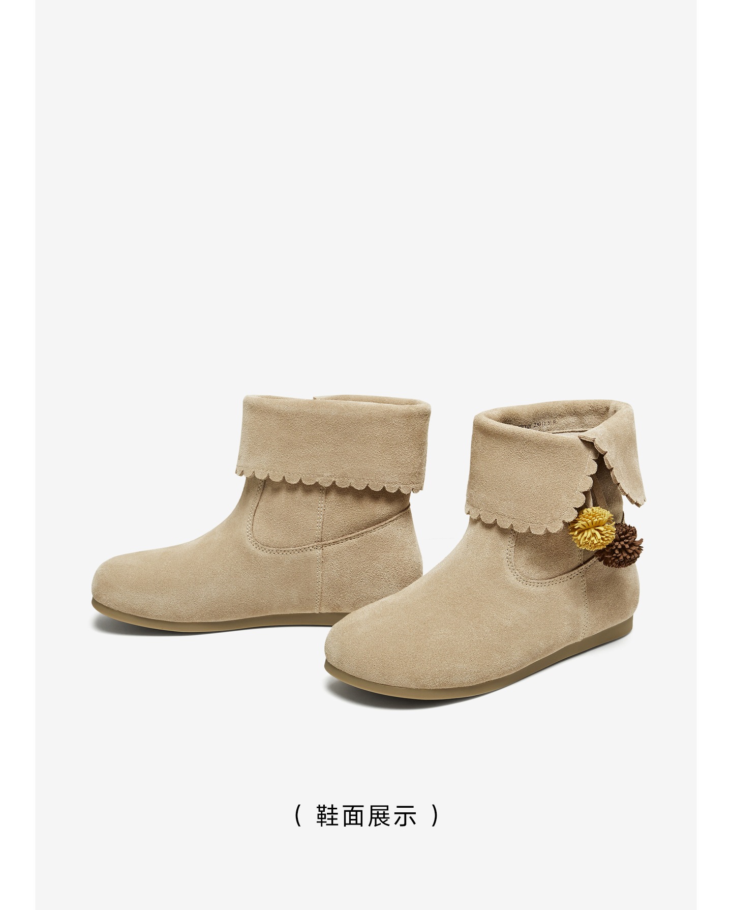 | 鞋底材质:橡胶底 | 靴筒内里材质:人造短绒毛 | 内增高:无 | 鞋面材质:牛剖层革 | 闭合方式:套脚 |