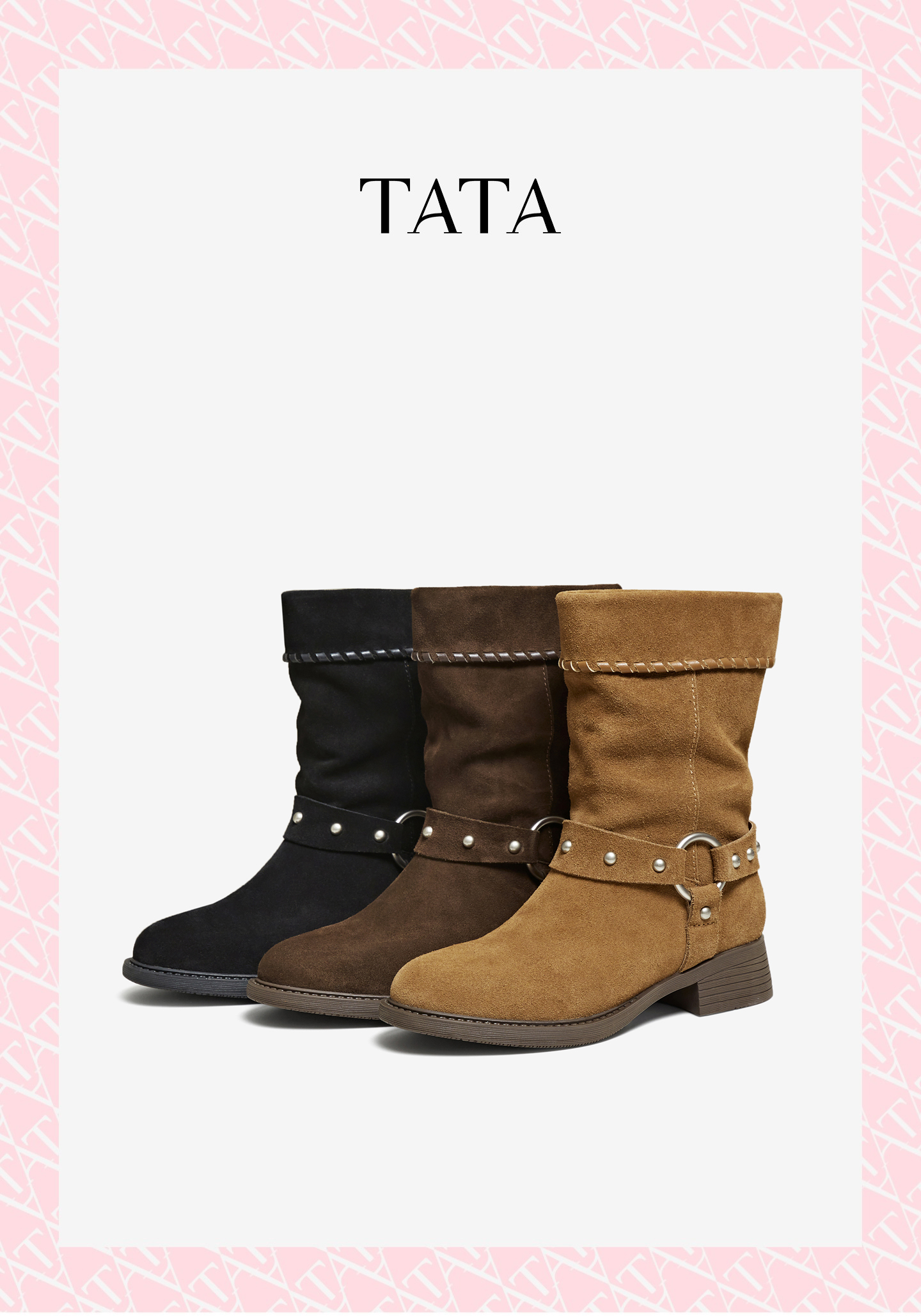 他她(Tata),品牌成立于2003年,致力为都市年轻人群提供时尚潮流、具有性价比的鞋履产品。十五年来“踏踏”的着地声,寓意都市白领元气满满的生活,如时尚“伴履”的TATA一直陪伴左右、伴随走出TATA的时尚步伐。2017年TATA美丽蜕变,TATA STAR元素的加入预示品牌将成为闪亮、前端的时尚鞋履品牌。