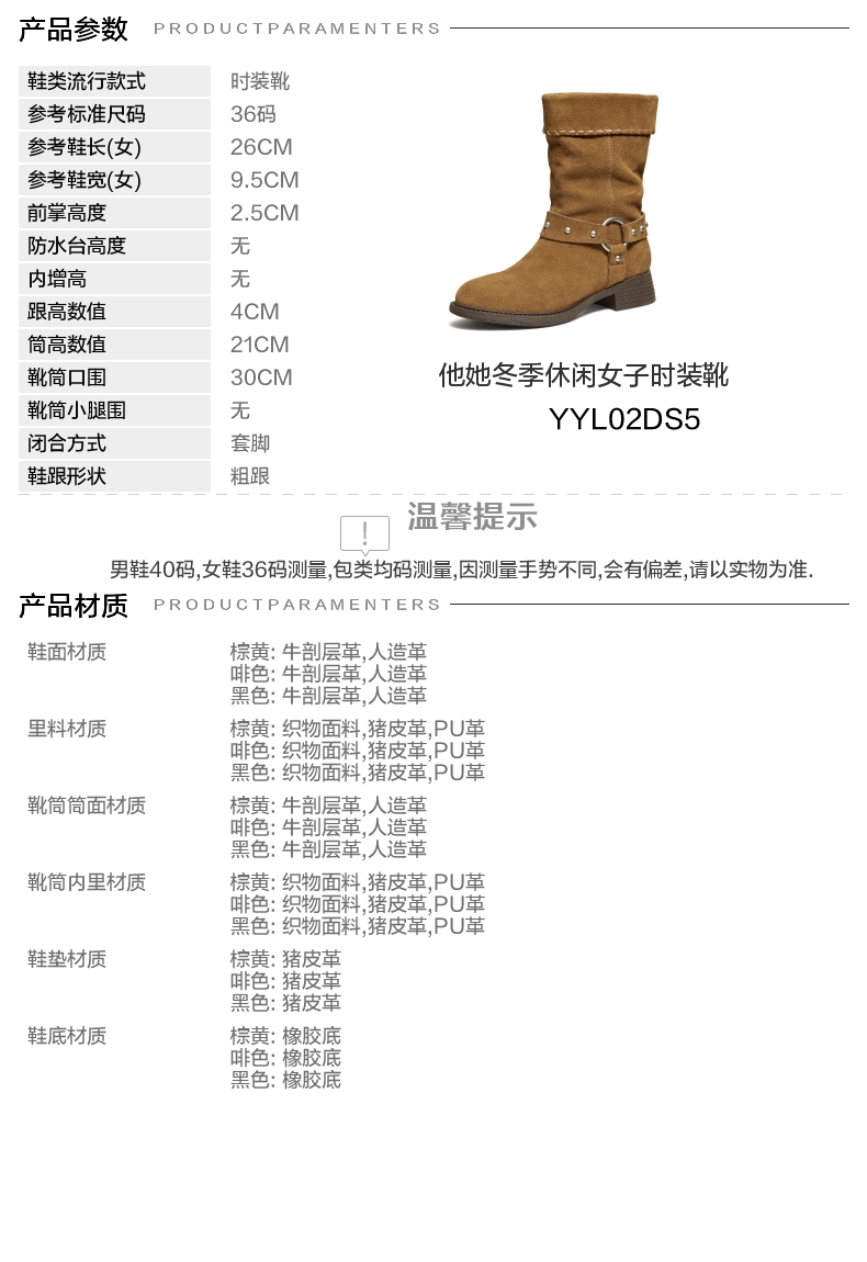 | 配跟:有 | 靴筒口围:30CM | 上市时间:2025年冬季 | 鞋类流行款式:时装靴 | 鞋头款式:圆头 |