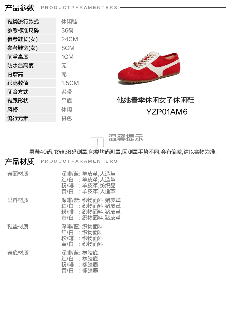 | 鞋跟形状:平底 | 参考鞋长(女):24CM | 流行元素:拼色 | 参考鞋宽(女):8CM | 风格:休闲 |