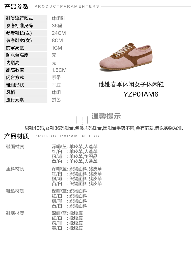 | 鞋跟形状:平底 | 参考鞋长(女):24CM | 流行元素:拼色 | 参考鞋宽(女):8CM | 风格:休闲 |