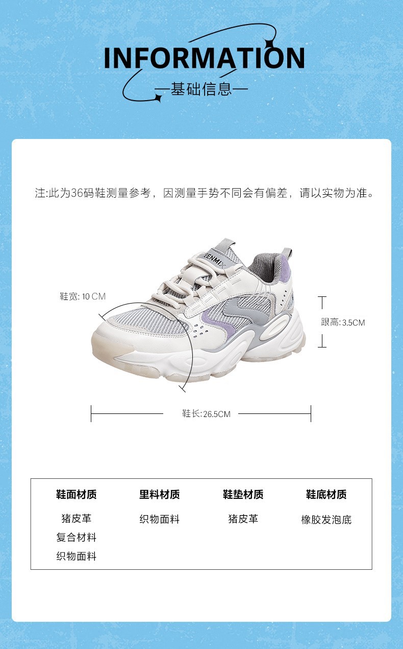 | 配跟:无 | 上市时间:2021年秋季 | 鞋类流行款式:老爹鞋 | 鞋头款式:圆头 | 鞋面图案:拼色 |
