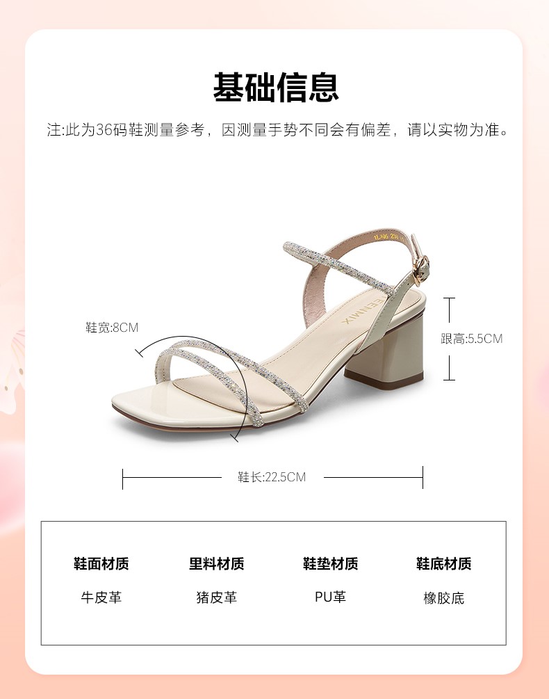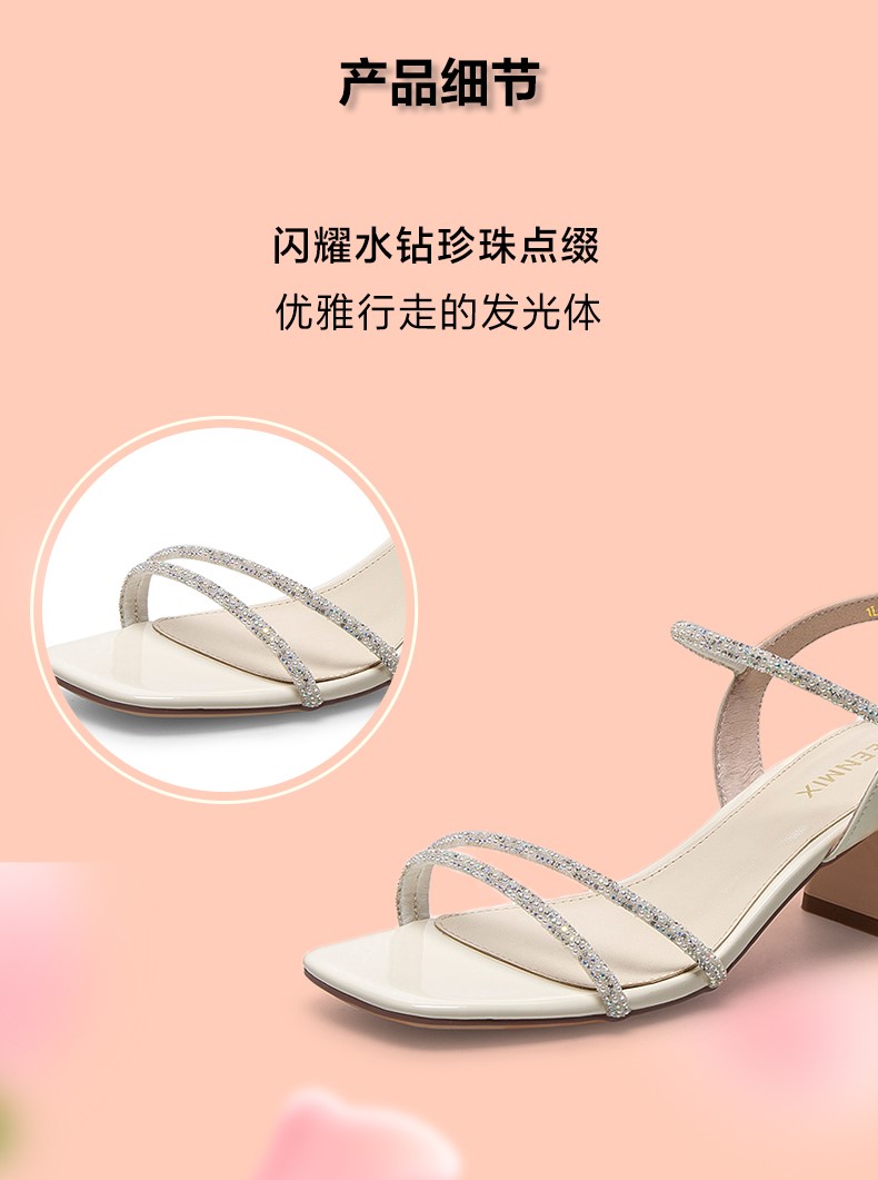 | 流行元素:水钻 | 参考鞋长(女):22.5CM | 参考鞋宽(女):8CM | 闭合方式:一字式扣带 | 风格:性感 |