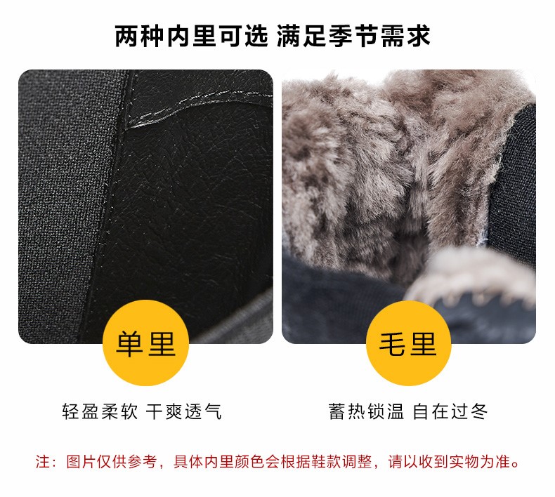 | 靴筒筒面材质:牛剖层皮革 | 里料材质:猪皮革羊毛 | 制鞋工艺:胶贴皮鞋 | 鞋垫材质:羊毛 | 款式季节:冬季 |