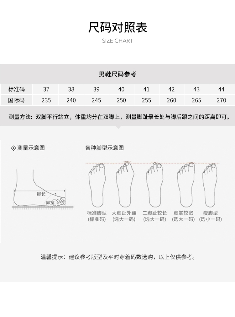 | 法国码 | 38 | 39 | 40 | 41 | 42 | 43 | 44 |