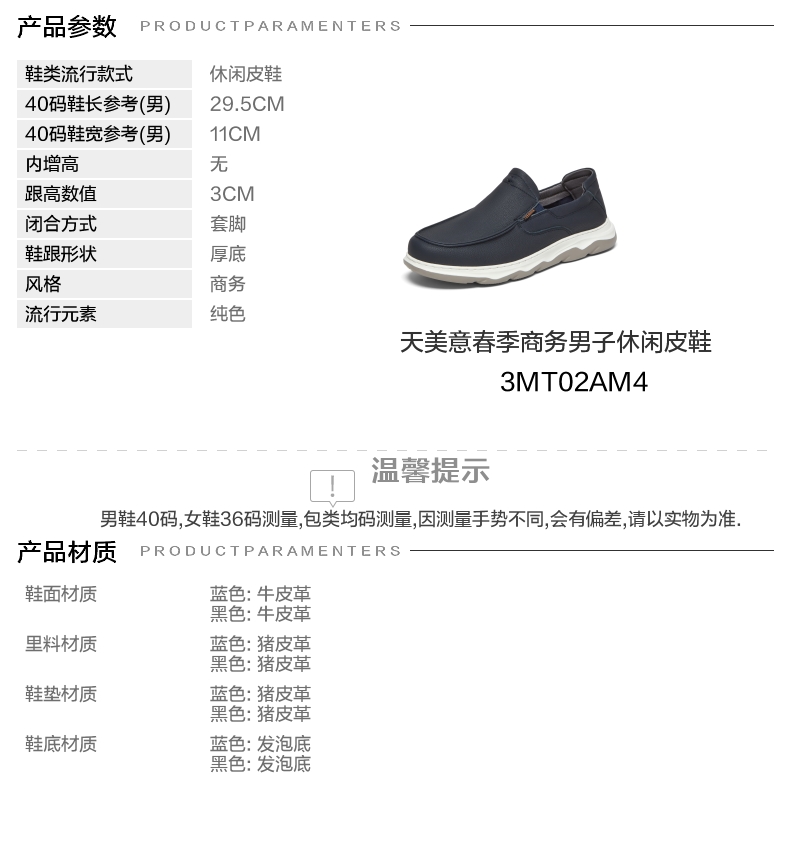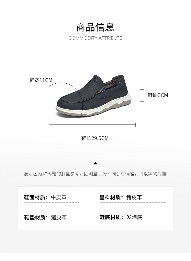 | 风格:商务 | 色系:蓝色 | 跟高数值:3CM | 40码鞋宽参考(男):11CM | 性别:男子 |