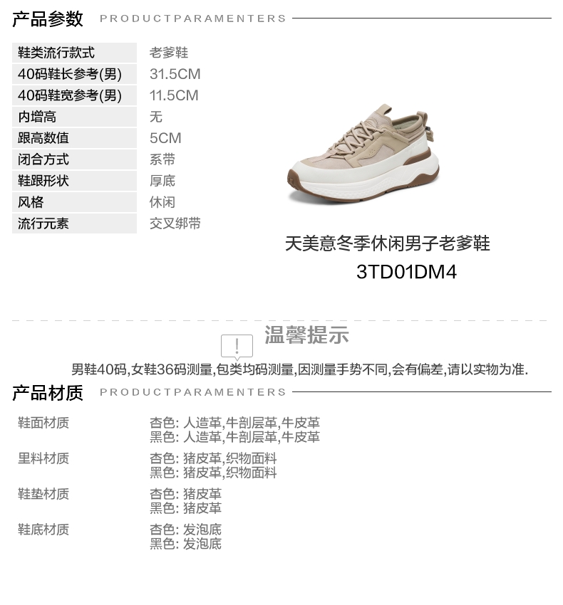 | 内里:纺织品猪皮 | 制鞋工艺:胶贴皮鞋 | 款式季节:冬季 | 鞋垫材质:猪皮革 | 渠道划分:线下同步 |