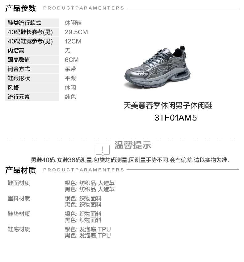 | 年份:2025年 | 色系:银色 | 跟高数值:6CM | 性别:男子 | 里料材质:织物面料 |