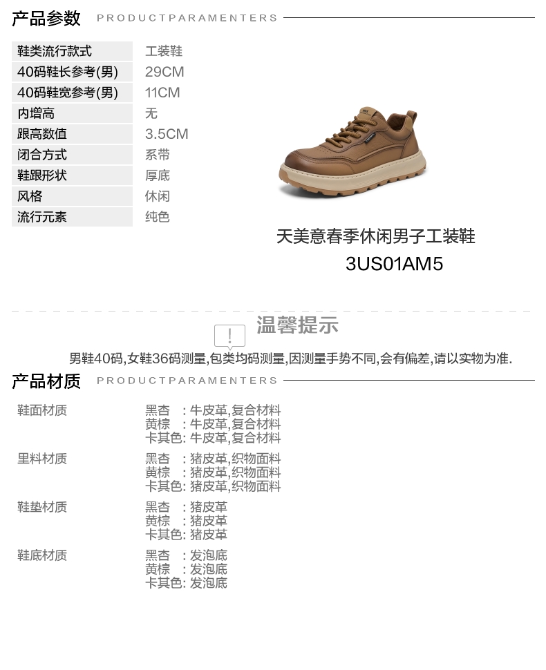 | 年份:2025年 | 色系:棕色 | 跟高数值:3.5CM | 性别:男子 | 里料材质:织物面料猪皮革 |