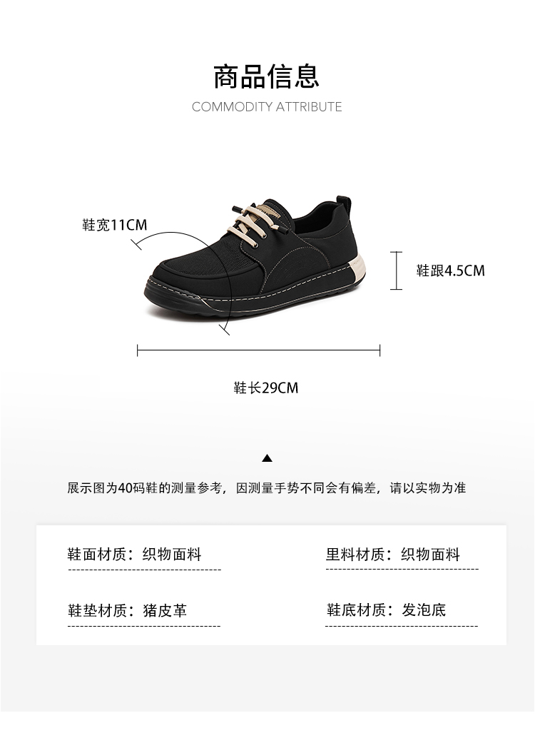| 40码鞋长参考(男):29CM | 鞋帮:低帮 | 鞋头款式:圆头 | 鞋底材质:发泡底 | 鞋面图案:纯色 |
