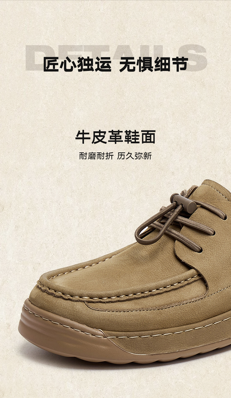 | 风格:休闲 | 色系:卡其 | 跟高数值:3.5CM | 40码鞋宽参考(男):11.5CM | 性别:男子 |