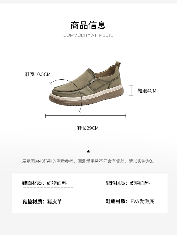 | 40码鞋长参考(男):29CM | 鞋帮:低帮 | 鞋头款式:圆头 | 鞋底材质:EVA发泡底 | 鞋面图案:纯色 |
