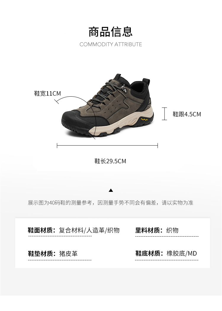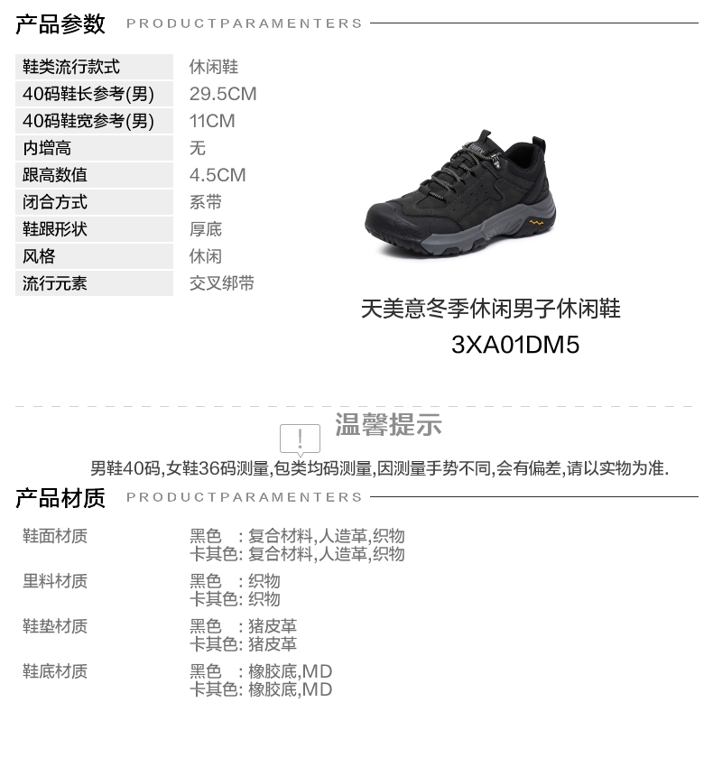 | 风格:休闲 | 色系:黑色 | 跟高数值:4.5CM | 40码鞋宽参考(男):11CM | 性别:男子 |