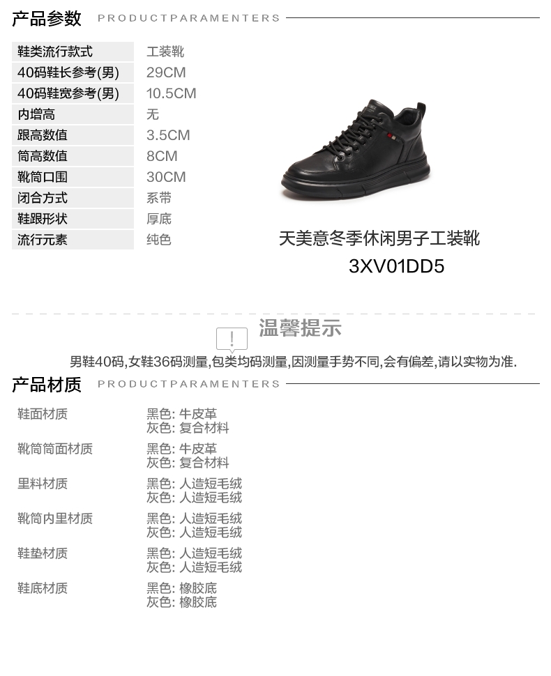 | 40码鞋长参考(男):29CM | 鞋底材质:橡胶底 | 靴筒内里材质:人造短毛绒 | 内增高:无 | 鞋面材质:牛皮革 |