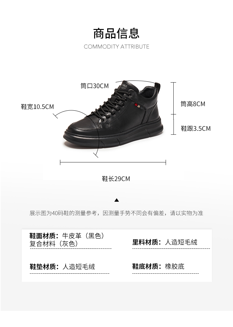 | 40码鞋长参考(男):29CM | 鞋底材质:橡胶底 | 靴筒内里材质:人造短毛绒 | 内增高:无 | 鞋面材质:复合材料 |