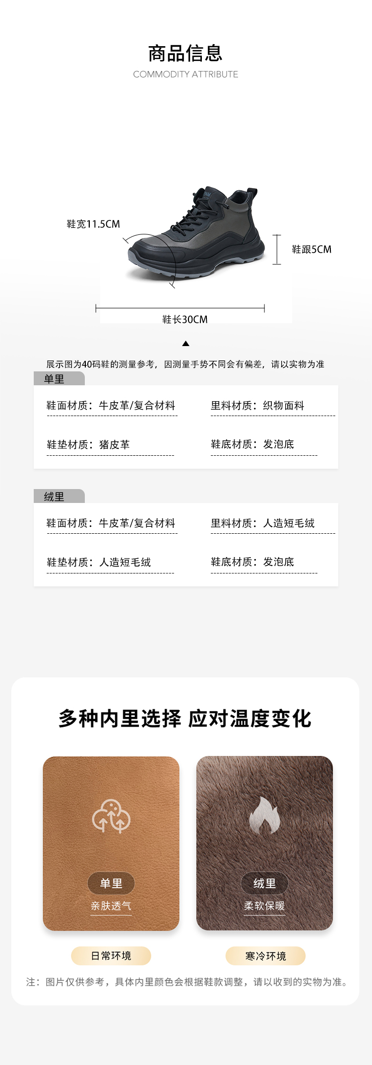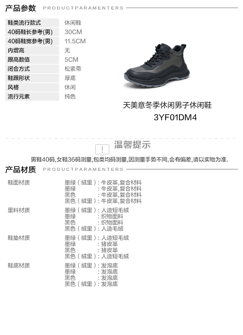| 内里:纺织品 | 制鞋工艺:胶贴皮鞋 | 款式季节:冬季 | 鞋垫材质:人造短毛绒 | 渠道划分:线下同步 |