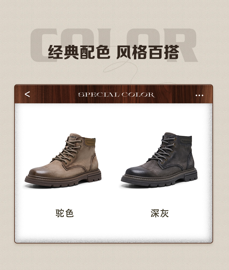 | 跟高数值:4CM | 色系:灰色 | 性别:男子 | 筒高数值:10.5CM | 靴筒筒面材质:猪剖层皮革 |